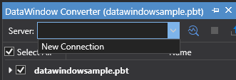 On the toolbar of DataWindow Converter, select New Connection from the Server dropdown list.