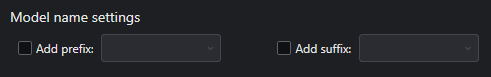 Whether to add prefix and/or suffix to the name of the generated model class.