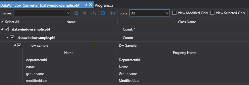 DataWindow Converter is designed to use the DataWindow objects from PowerBuilder to generate the C# data objects and models that can be used with SnapObjects in the C# editor (such as SnapDevelop and Visual Studio). To perform this operation, you need to have a PowerBuilder application which contains the DataWindow objects and a C# project to which you want to export the DataWindow objects.