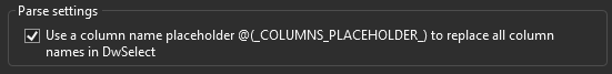 For example, the DwSelect attribute may look like below when using the column placeholder: