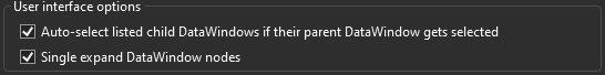 - Single expand DataWindow nodes Whether to single expand DataWindow nodes. If selected, only one DataWindow will be expanded at a time, and if you expand another DataWindow, the previously expanded DataWindow will be collapsed.