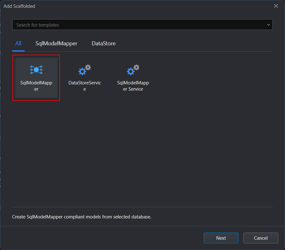 Currently, SnapDevelop's Scaffolding technology can generate SqlModelMapper models. SqlModelMapper is a data access technology implemented by the ORM framework (SnapObjects) independently developed by the SnapDevelop team.