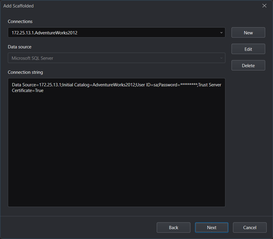 - Configure the connection string into the appsettings -- If checked, the database connection string will be saved in the configuration file (appsettings.json), if not checked, the database connection string (including password) will be stored in plain text in code (the project's DbContext class file). Saving connection strings in code is generally not recommended.