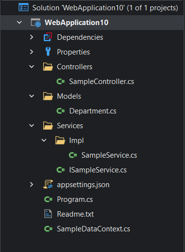 Following is an introduction to the model, DbContext, controller, and service (including implementation and interface) files.