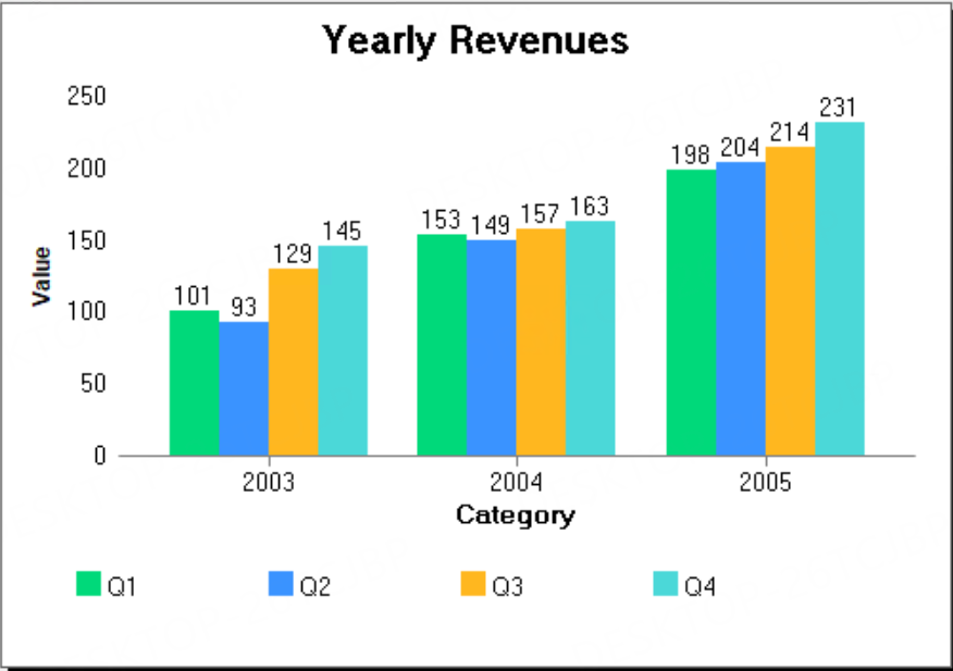 The following graph types support displaying data values on the corresponding bar or column in the chart: