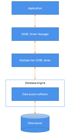 A multiple-tier ODBC driver processes ODBC functions, but sends SQL statements to the database engine for processing. Unlike the single-tier driver, a multiple-tier driver does not include the data access software required to manage the data directly.