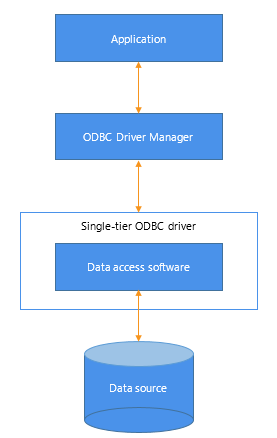 A single-tier ODBC driver processes both ODBC functions and SQL statements. In other words, a single-tier driver includes the data access software required to manage the data source file and catalog tables. An example of a single-tier ODBC driver is one that accesses Xbase files, such as the DataDirect dBASE ODBC driver.