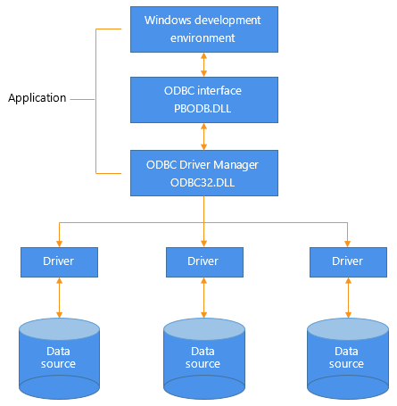 Applications that provide an ODBC interface, like InfoMaker, can access data sources for which an ODBC driver exists. An ODBC data source driver is a dynamic link library (DLL) that implements ODBC function calls. The application invokes the ODBC driver to access a particular data source.