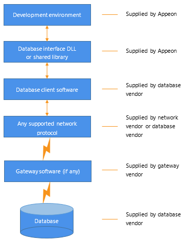 When you use a native database interface to access a database, your connection goes through several layers before reaching the data. Each layer is a separate component of the connection and each component might come from a different vendor.