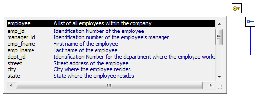 As icons connected by lines to a table in the Object Layout view