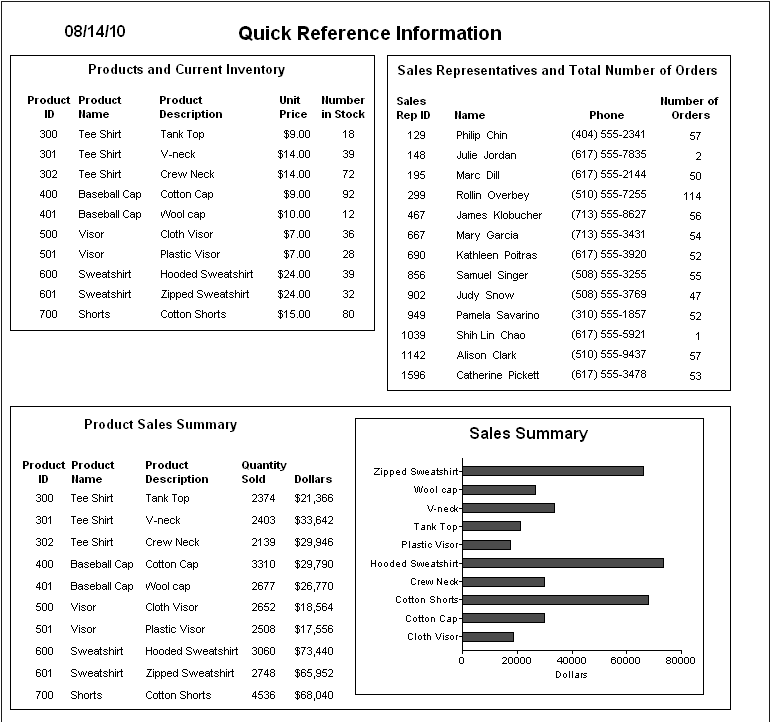 The N-Up style presents two or more rows of data next to each other. It is similar to the Label style in that you can have information from several rows in the database across the page. However, the information is not meant to be printed on labels. The N-Up presentation style is useful if you have periodic data; you can set it up so that each period repeats in a row.