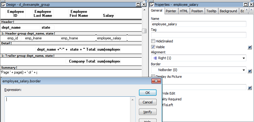 In some cases, however, you might want some properties of controls in reports to be driven by the data, which is not known when you are defining the report in the painter. For these situations you can define property conditional expressions, which are expressions that are evaluated at runtime.