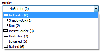 In the Properties view, the list of choices for setting a property includes the values that correspond to choices in parentheses. This makes it easier to define an expression for a property; you do not need to look up the values. For example, if you want to specify the ResizeBorder in your expression, you use the number 3, as shown in the drop-down list.