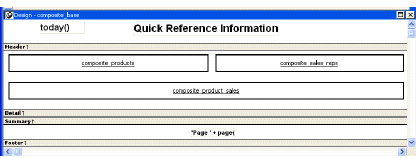 In the Design view, you see three boxes that represent the individual tabular reports that are included in the composite report. The only additional controls in this example are a title, date, and page number: