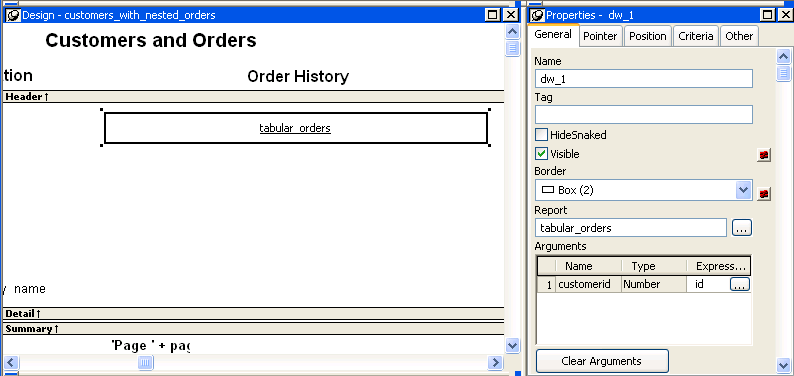 For example, suppose the nested report lists orders and you want to list orders for a particular customer. To define a retrieval argument, you would: