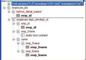 • The emp_fname element contains static text.