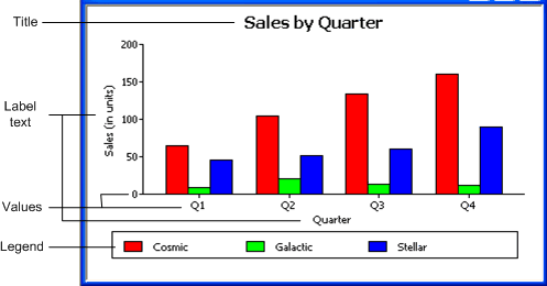 You can divide axes into divisions. Each division is identified by a tick mark, which is a short line that intersects an axis. In the Sales by Printer graphs shown in Examples, the graph's Value axis is divided into major divisions of 50 units each. InfoMaker divides the axes automatically into major divisions.