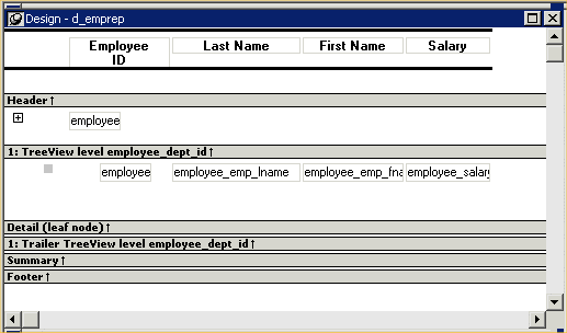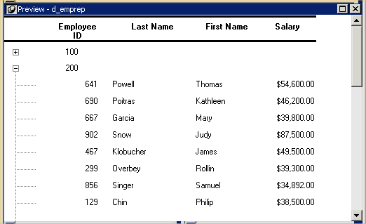 The sample report shown in Example uses the department and employee tables in the PB Demo DB database.