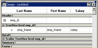 All of the techniques available in a tabular report, such as moving controls and specifying display formats, are available for modifying and enhancing TreeView reports. See Adding and deleting TreeView levels to read more about the bands in a TreeView report and see how to add features especially suited for TreeView reports, such as additional TreeView levels or summary statistics.