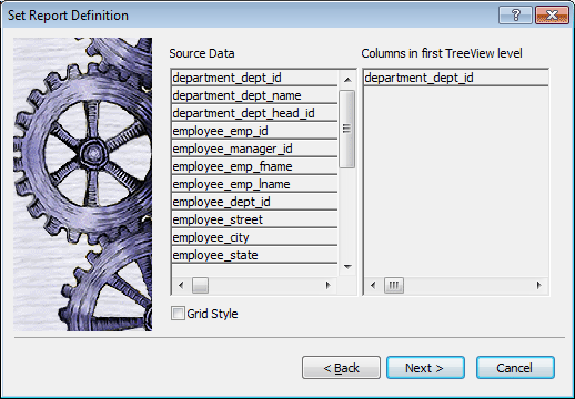 You are prompted to specify the TreeView grouping columns.