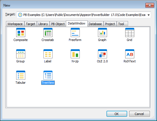 If there is more than one target in the workspace, select the target where you want to create the DataWindow from the drop-down list at the bottom of the dialog box.