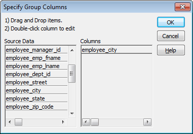 Specify the columns you want to set as the next TreeView level by dragging them from the Source Data pane to the Columns pane.