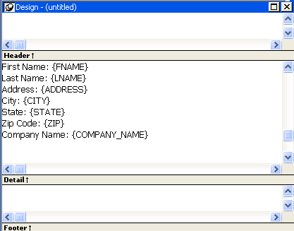 Begin editing text in the detail, header, or footer bands, building a report around the input fields. You can delete, move, copy, and paste text and input fields as needed.