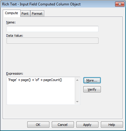 If you do not select a predefined computed field, InfoMaker displays the dialog box for the computed field: