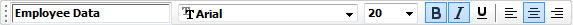 The Form painter has customizable PainterBars and a StyleBar. The PainterBars have buttons for form operations. The StyleBar has buttons for modifying text properties such as the font and whether the text is bold or italic. For information on using toolbars, and customizing and manipulating them, see Using toolbars.