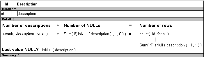 In the report, you create a computed field that uses functions to display the number of null values in the Description column.
