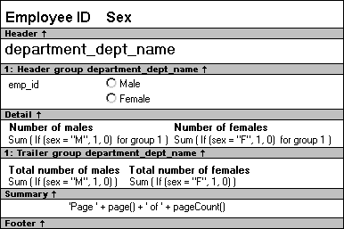 Using the employee table in the PB Demo DB as the data source, you create a report using at least the Emp_id and the Sex columns. You want the report to display the number of male employees and female employees in the company.