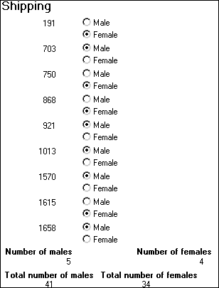 Here is the last page of the report with the number of males and females in the shipping department displayed, followed by the total number of males and females in the company.