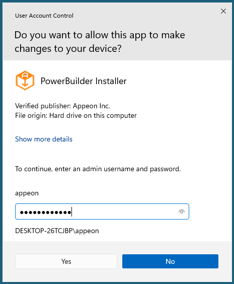 Administrator users logging into Windows can right-click the "Appeon PowerBuilder/InfoMaker Installer" menu item in the Windows Start menu and then select "Run as administrator" to install PowerBuilder/InfoMaker products. All operations remain the same as before.