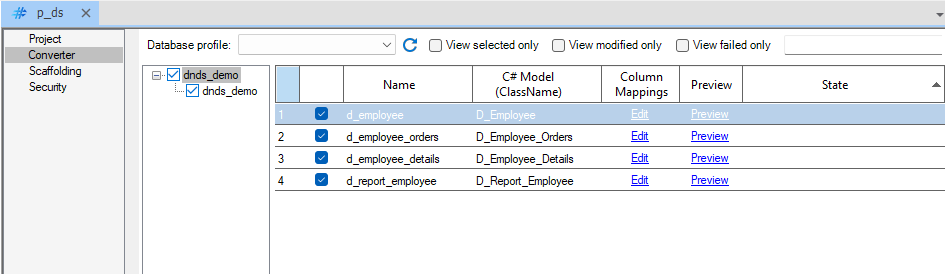 Configure the database profile from the DropDown menu and provide the connection to the Demo DB: