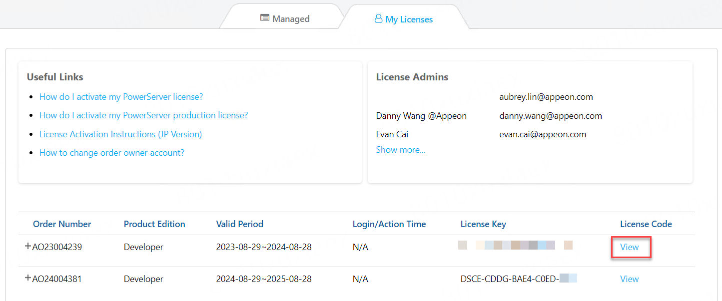 Click License Management in the navigation bar, and then select Assigned Licenses under the PowerServer section.