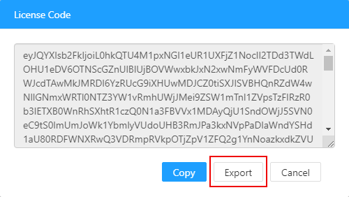 Click Export to export the license code to a TXT file ([LicenseKey].txt) and save the file on the local machine.