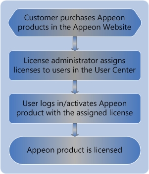 The license administrator or the user purchases the Appeon product on the Appeon website.