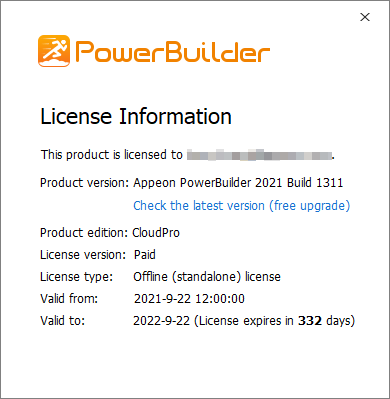 Check the offline license information from Help > Offline License Management > License Info in PowerBuilder.