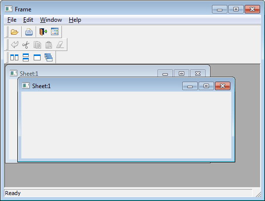 Sheets are windows that can be opened in the client area of an MDI frame. You can use any type of window except an MDI frame as a sheet in an MDI application. To open a sheet, use either the OpenSheet or OpenSheetWithParm function.