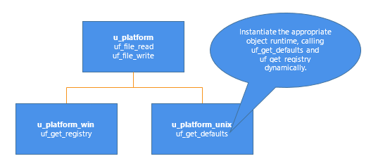 In certain situations, such as when insulating your application from cross-platform dependencies, you create separate descendant objects, each intended for a particular situation. Your application calls the platform-dependent functions dynamically: