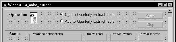 When users want to start their selected pipeline, they click the cb_write CommandButton in the w_sales_extract window: