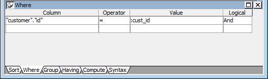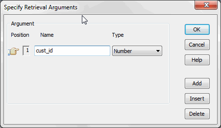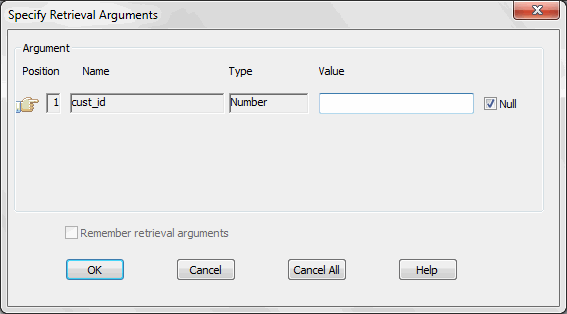 Now you specify a WHERE clause using the retrieval argument to retrieve a specific customer.