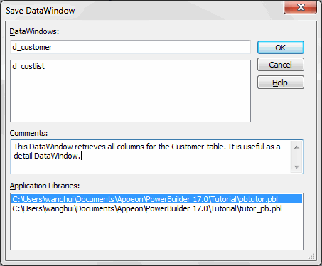 Now you name the DataWindow object and save it. You could wait to save it until you leave the painter, but it is good practice to save your work frequently.