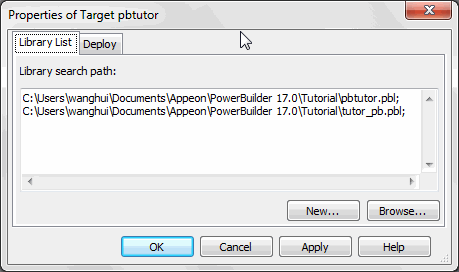 You return to the Library List page. The tutor_pb.pbl is now included in the search path for the tutorial application.