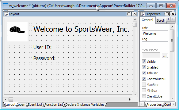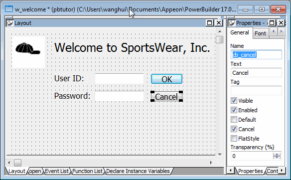 Now you modify the login window you just created by adding controls and changing some of their properties. You: