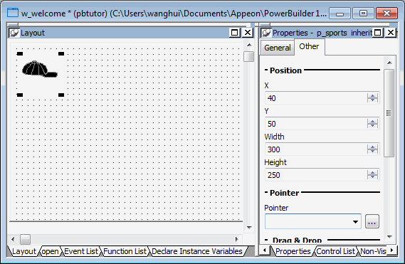 You can use the spin controls in the X and Y text boxes to enter these values. You might want to adjust the position of the picture control again after you preview the window at the end of this lesson.
