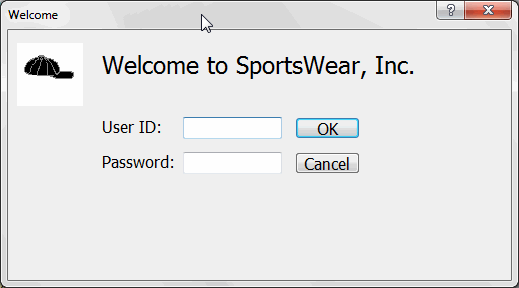 The login window appears as it would at runtime. If you do not like the window layout, you can change the size, location, and fonts of the window controls when you go back to the Window painter workspace.