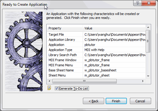 The wizard automatically assigns file names to a library and target that use this application name. It assigns the library a PBL extension and the target a PBT extension.