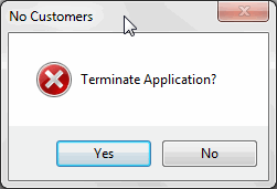 If the check box is selected when you click the button again and you select Yes in the error message box, the application closes and you return to the development environment.