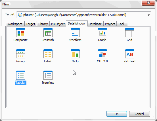 The Choose Data Source for Tabular DataWindow page of the DataWindow wizard displays.